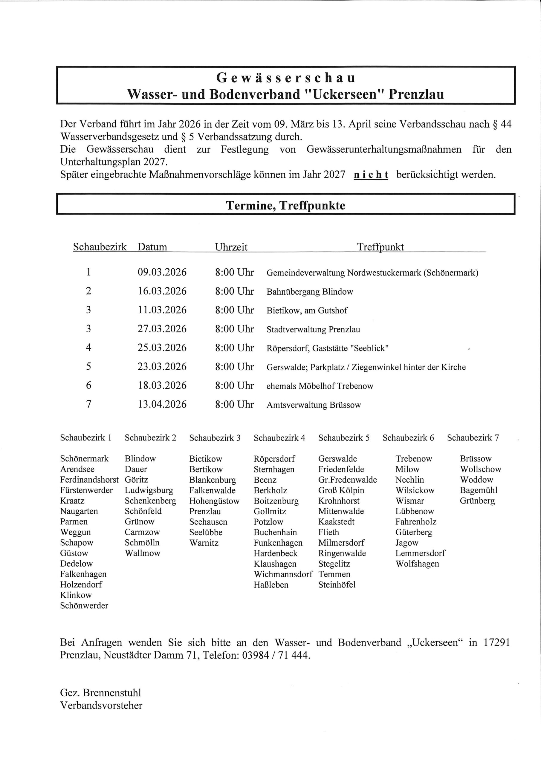 Die Termine für die Gewässerschau 2026 stehen fest und lauten wie folgt: